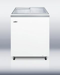 30" Flat Top Ice Cream Freezer With 21" Deep Interior Flat Sliding Glass Lid Factory Installed Lock Enamel Steel Interior Casters Drain & Manual Defrost